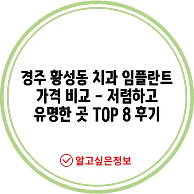 💡 경주 황성동에서 가장 저렴한 임플란트 가격 정보를 지금 바로 알아보세요. 💡