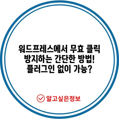 워드프레스에서 무효 클릭 방지 방법을 플러그인 없이 자바스크립트로 간단히 적용하는 방법을 알아보세요. 자세한 단계별 설명을 제공합니다.