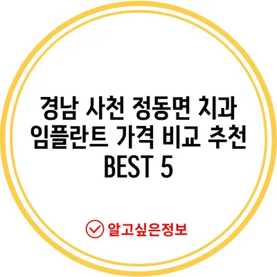 💡 경남 사천 정동면에서 가장 저렴한 임플란트 가격을 알아보세요! 💡