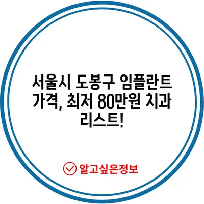 서울시 도봉구 임플란트 가격, 최저 80만원 치과 리스트!