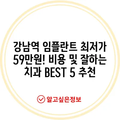 강남역 임플란트 최저가 59만원! 비용 및 잘하는 치과 BEST 5 추천