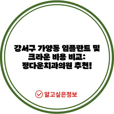 강서구 가양동 임플란트 및 크라운 비용 비교: 정다운치과의원 추천!
