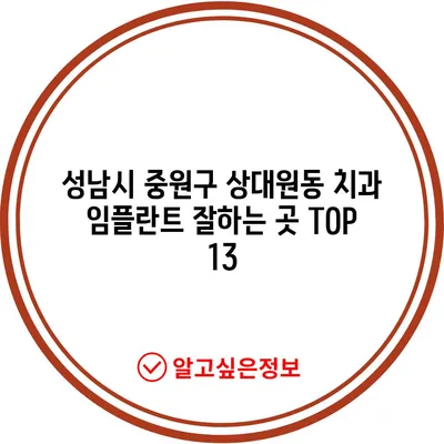 💡 성남시 중원구 상대원동의 치과 임플란트 정보와 후기를 자세히 알아보세요. 💡