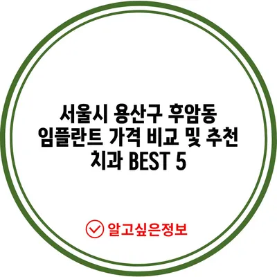 💡 서울시 용산구 후암동 치과에서 임플란트 가격을 비교해보세요! 💡