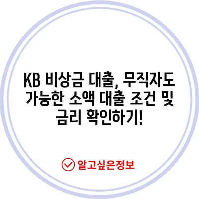 KB 비상금 대출, 무직자도 가능한 소액 대출 조건 및 금리 확인하기!