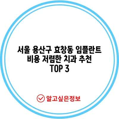 💡 효창동에서 저렴하게 임플란트를 받을 수 있는 방법을 알아보세요. 💡