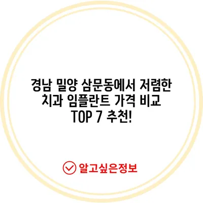 경남 밀양 삼문동에서 저렴한 치과 임플란트 가격 비교 TOP 7 추천!