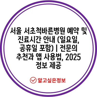 서울 서초척바른병원 예약 및 진료시간 공지 (일요일, 공휴일 포함) | 전연락 추천과 앱 사용법, 2025 정보 제공