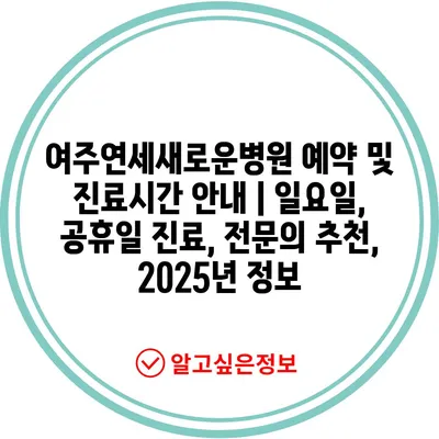 ✅ 여주연세새로운병원의 진료시간과 예약 방법을 알아보세요.