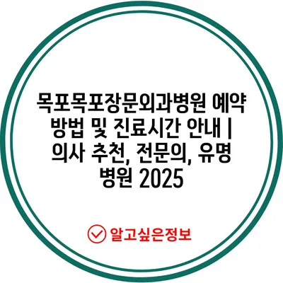 ✅ 목포목포장문외과병원의 예약 방법과 진료 시간을 지금 바로 알아보세요.