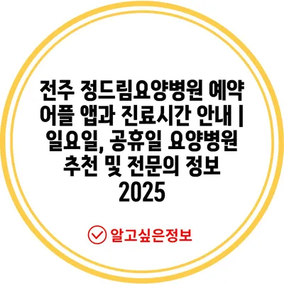 ✅ 전주 정드림요양병원의 진료시간과 예약 방법을 알아보세요.