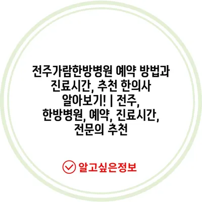 전주가람한방병원 예약 방법과 진료시간, 추천 한의사 알아보기! | 전주, 한방병원, 예약, 진료시간, 전문의 추천