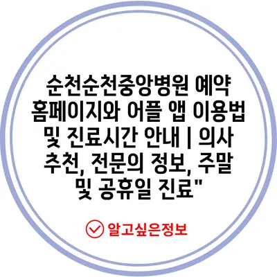 순천순천중앙병원 예약 홈페이지와 어플 앱 이용법 및 진료시간 안내 | 의사 추천, 전문의 정보, 주말 및 공휴일 진료”