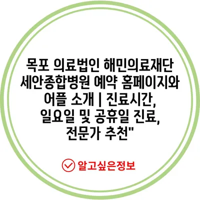 목포 의료법인 해민의료재단 세안종합병원 예약 홈페이지와 어플 소개 | 진료시간, 일요일 및 공휴일 진료, 전문가 추천”