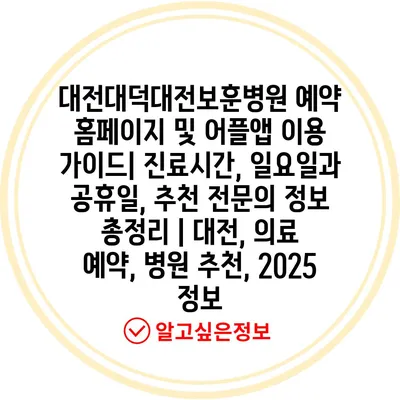 대전대덕대전보훈병원 예약 홈페이지 및 어플앱 이용 가이드| 진료시간, 일요일과 공휴일, 추천 전문의 정보 총정리 | 대전, 의료 예약, 병원 추천, 2025 정보