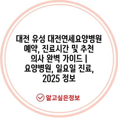 대전 유성 대전연세요양병원 예약, 진료시간 및 추천 의사 완벽 가이드 | 요양병원, 일요일 진료, 2025 정보