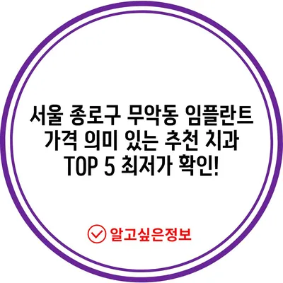 서울 종로구 무악동 임플란트 가격 의미 있는 추천 치과 TOP 5 최저가 확인!