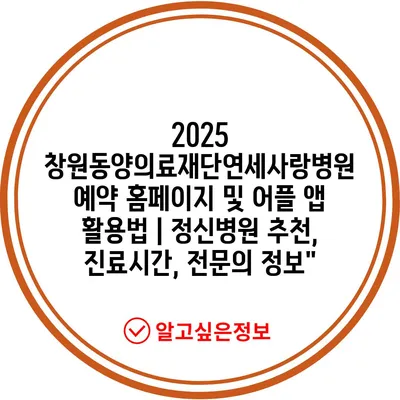 2025 창원동양의료재단연세사랑병원 예약 홈페이지 및 어플 앱 활용법 | 정신병원 추천, 진료시간, 전문의 정보”