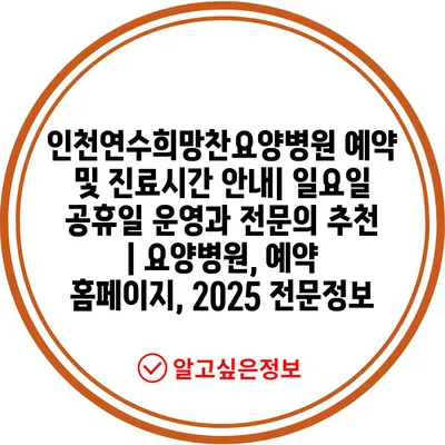 인천연수희망찬요양병원 예약 및 진료시간 안내| 일요일 공휴일 운영과 전문의 추천 | 요양병원, 예약 홈페이지, 2025 전문정보