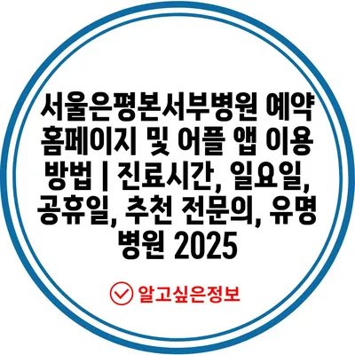 서울은평본서부병원 예약 홈페이지 및 어플 앱 이용 방법 | 진료시간, 일요일, 공휴일, 추천 전문의, 유명 병원 2025