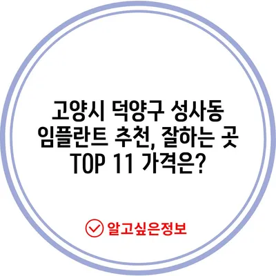 고양시 덕양구 성사동 임플란트 추천, 잘하는 곳 TOP 11 가격은?