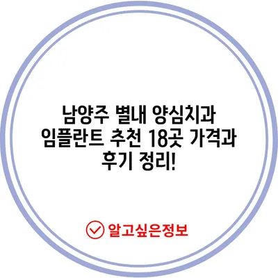 남양주 별내 양심치과 임플란트 추천 18곳 가격과 후기 정리!