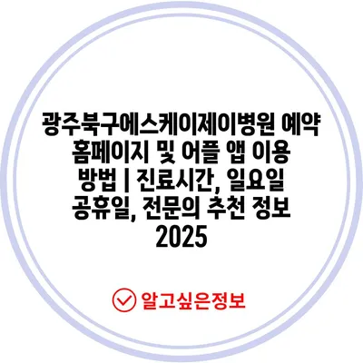 광주북구에스케이제이병원 예약 홈페이지 및 어플 앱 이용 방법 | 진료시간, 일요일 공휴일, 전문의 추천 정보 2025