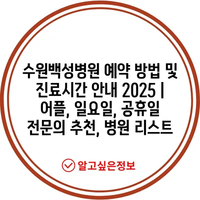 수원백성병원 예약 방법 및 진료시간 안내 2025 | 어플, 일요일, 공휴일 전문의 추천, 병원 리스트