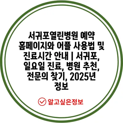 서귀포열린병원 예약 홈페이지와 어플 사용법 및 진료시간 안내 | 서귀포, 일요일 진료, 병원 추천, 전문의 찾기, 2025년 정보