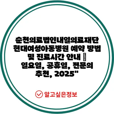 순천의료법인내일의료재단 현대여성아동병원 예약 방법 및 진료시간 안내 | 일요일, 공휴일, 전문의 추천, 2025″