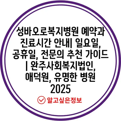 성바오로복지병원 예약과 진료시간 안내| 일요일, 공휴일, 전문의 추천 가이드 | 완주사회복지법인, 애덕원, 유명한 병원 2025