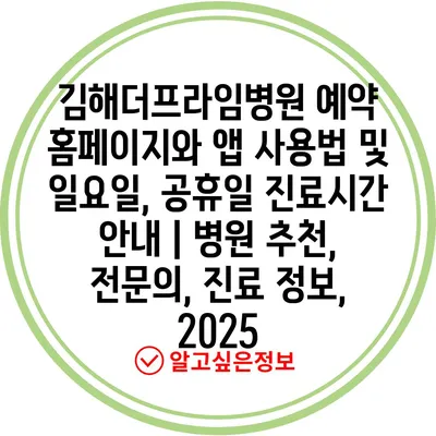 김해더프라임병원 예약 홈페이지와 앱 사용법 및 일요일, 공휴일 진료시간 안내 | 병원 추천, 전문의, 진료 정보, 2025