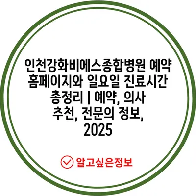 인천강화비에스종합병원 예약 홈페이지와 일요일 진료시간 총정리 | 예약, 의사 추천, 전문의 정보, 2025