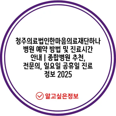 청주의료법인한마음의료재단하나병원 예약 방법 및 진료시간 안내 | 종합병원 추천, 전문의, 일요일 공휴일 진료 정보 2025