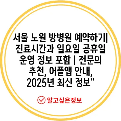 서울 노원 방병원 예약하기| 진료시간과 일요일 공휴일 운영 정보 포함 | 전문의 추천, 어플앱 안내, 2025년 최신 정보”