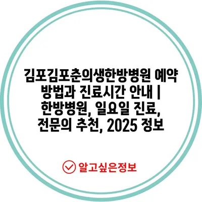 김포김포춘의생한방병원 예약 방법과 진료시간 안내 | 한방병원, 일요일 진료, 전문의 추천, 2025 정보