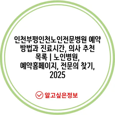 인천부평인천노인전문병원 예약 방법과 진료시간, 의사 추천 목록 | 노인병원, 예약홈페이지, 전문의 찾기, 2025