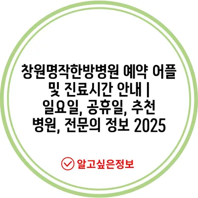 창원명작한방병원 예약 어플 및 진료시간 안내 | 일요일, 공휴일, 추천 병원, 전문의 정보 2025