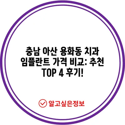 충남 아산 용화동 치과 임플란트 가격 비교: 추천 TOP 4 후기!