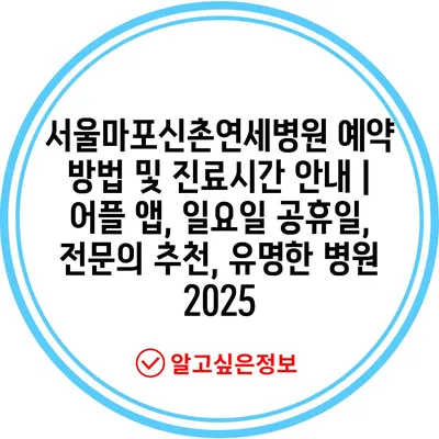 서울마포신촌연세병원 예약 방법 및 진료시간 안내 | 어플 앱, 일요일 공휴일, 전문의 추천, 유명한 병원 2025