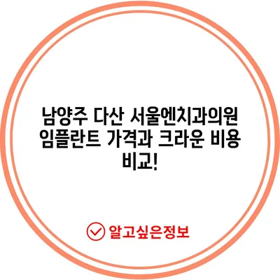 남양주 다산 서울엔치과의원 임플란트 가격과 크라운 비용 비교!