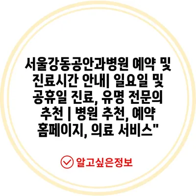 서울강동공안과병원 예약 및 진료시간 안내| 일요일 및 공휴일 진료, 유명 전문의 추천 | 병원 추천, 예약 홈페이지, 의료 서비스”