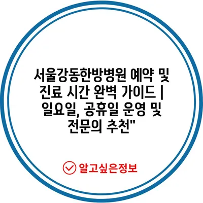 서울강동한방병원 예약 및 진료 시간 완벽 가이드 | 일요일, 공휴일 운영 및 전문의 추천”