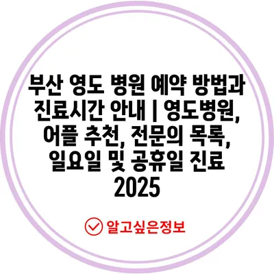 부산 영도 병원 예약 방법과 진료시간 안내 | 영도병원, 어플 추천, 전문의 목록, 일요일 및 공휴일 진료 2025