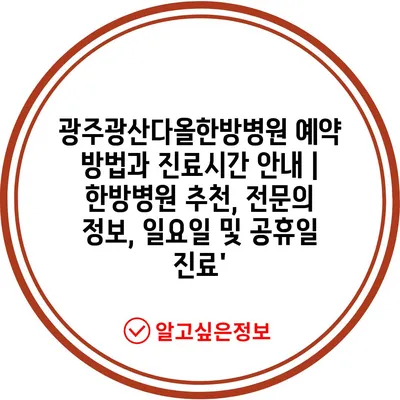 광주광산다올한방병원 예약 방법과 진료시간 안내 | 한방병원 추천, 전문의 정보, 일요일 및 공휴일 진료’
