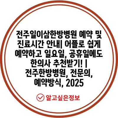 전주일이삼한방병원 예약 및 진료시간 안내| 어플로 쉽게 예약하고 일요일, 공휴일에도 한의사 추천받기! | 전주한방병원, 전문의, 예약방식, 2025