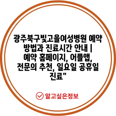 광주북구빛고을여성병원 예약 방법과 진료시간 안내 | 예약 홈페이지, 어플앱, 전문의 추천, 일요일 공휴일 진료”