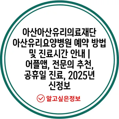 아산아산유리의료재단 아산유리요양병원 예약 방법 및 진료시간 안내 | 어플앱, 전문의 추천, 공휴일 진료, 2025년 신정보