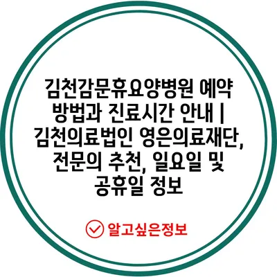 김천감문휴요양병원 예약 방법과 진료시간 안내 | 김천의료법인 영은의료재단, 전문의 추천, 일요일 및 공휴일 정보