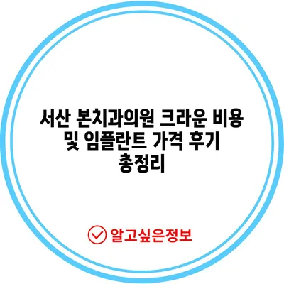 서산 본치과의원 크라운 비용 및 임플란트 가격 후기 총정리